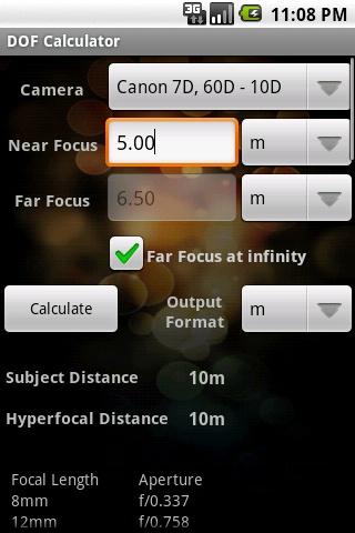 La prima si chiama DoF Calc ed è molto semplice da usare, basta scegliere nel menù il proprio modello di reflex ed impostare l'apertura, la lunghezza focale e la distanza del soggetto e ci vengono restituiti i valori della profondità di campo nell'unità di misura preferita. Comodissima l'interfaccia che permette di configurare velocemente le opzioni avendo tutto sotto controllo nella medesima schermata.